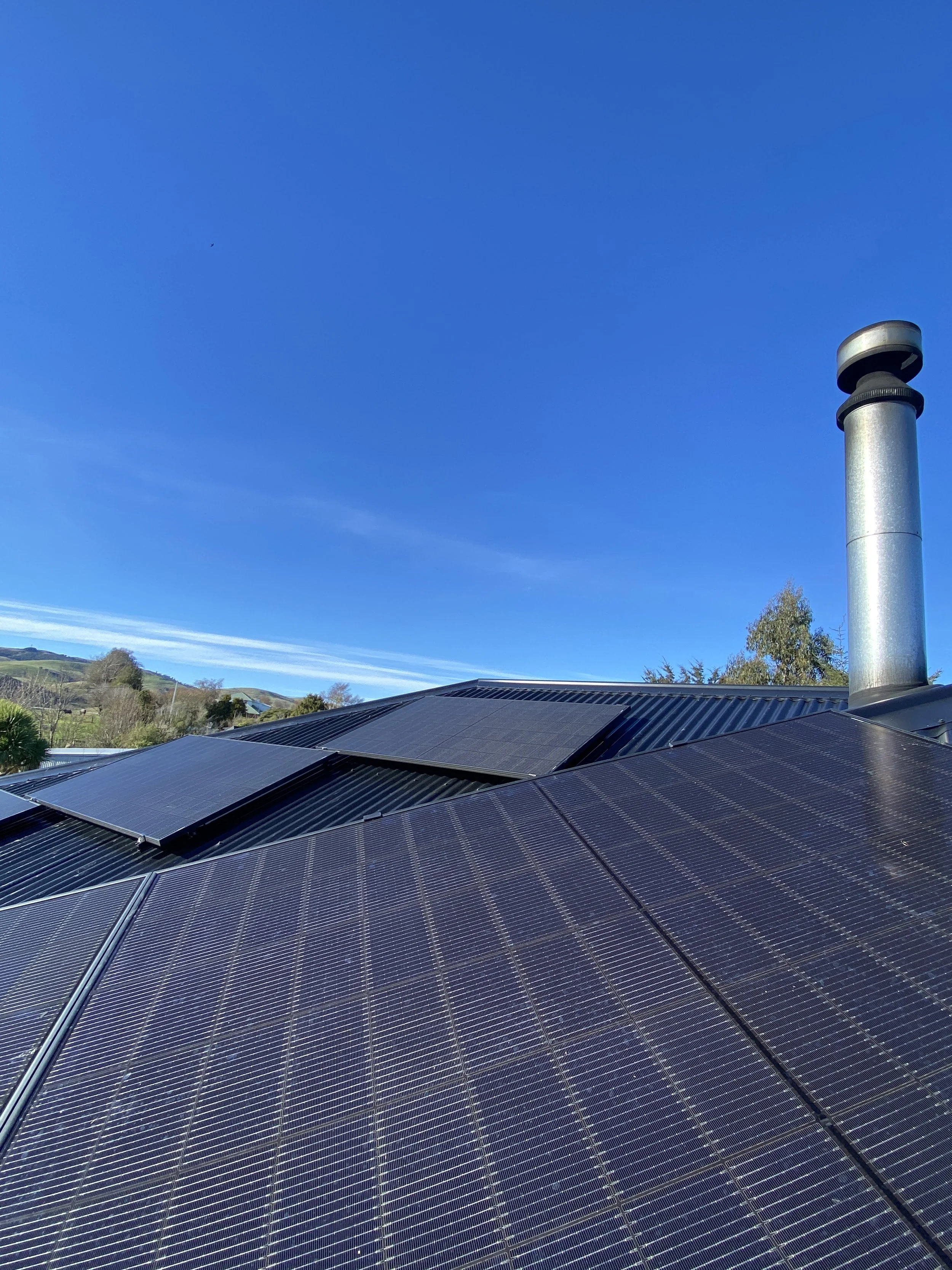 This remote residence required a durable solar system with ample battery storage for long grid blackout periods. We worked closely with the Homeowner installing a Fronius 10kw Inverter with a 34Kw BYD battery system powered by all black Hyundai 450w panels. The system has seen a 110% bill reduction since operation and blends in with the nature of the home.